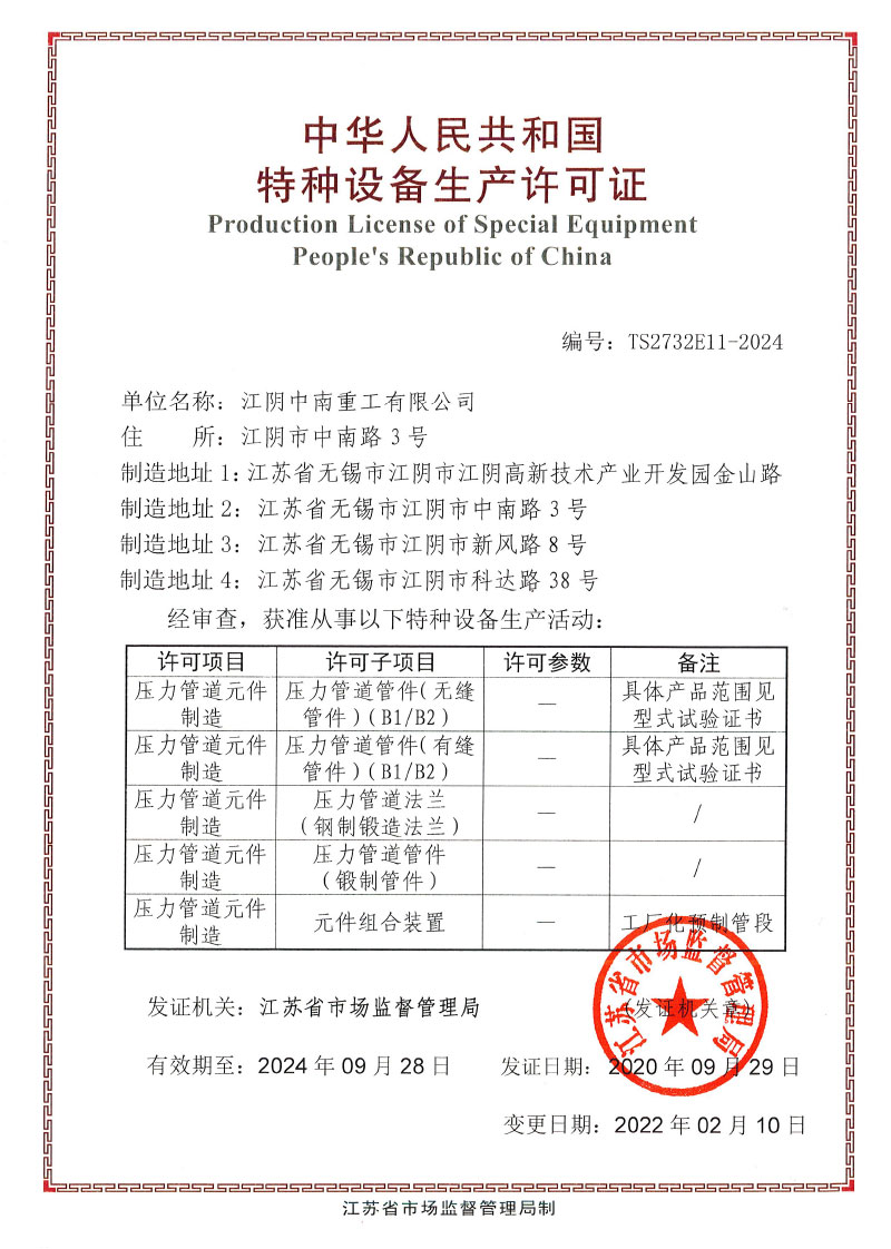 Zhongnan Red Culture Group Co., Ltd. was listed on the Shenzhen Stock Exchange in July 2010 (stock code 002445), and It is the first listed company for industrial metal pipe fitting in China. In 2021, the company was successfully restructured and became a listed company controlled by Jiangyin city state-owned Assets. At present, the company's main business is the manufacturing of pressure vessel,pipe fitting and flange etc., cultural media and new energy.